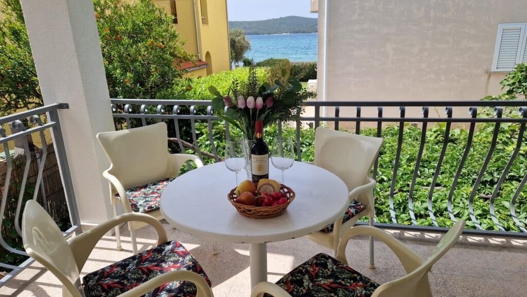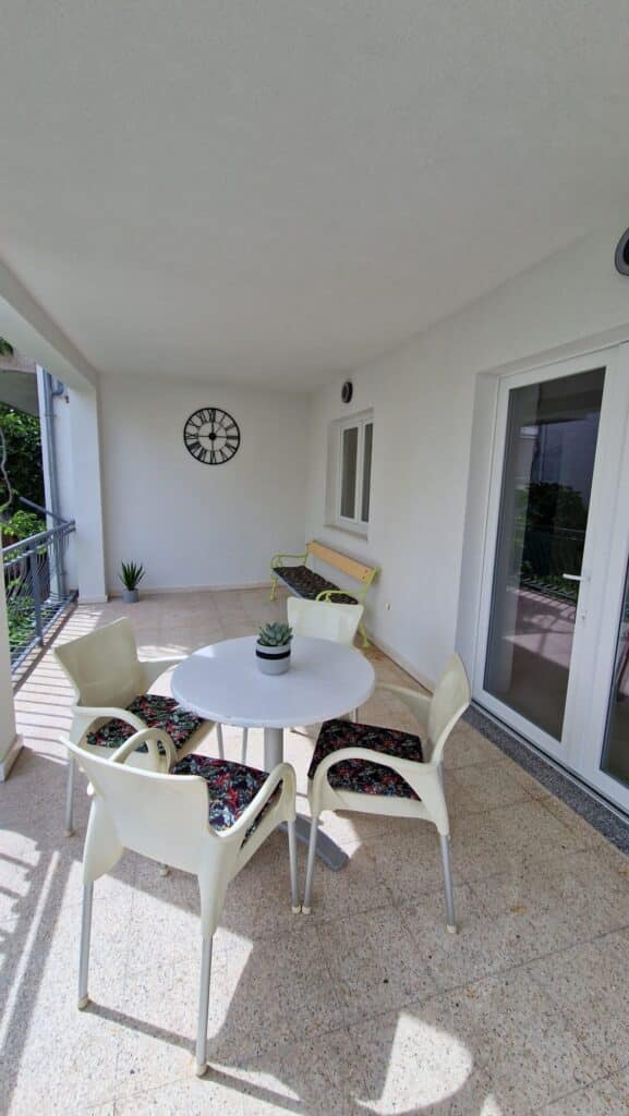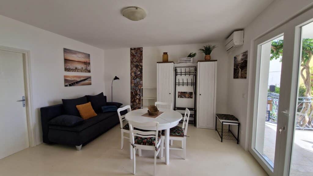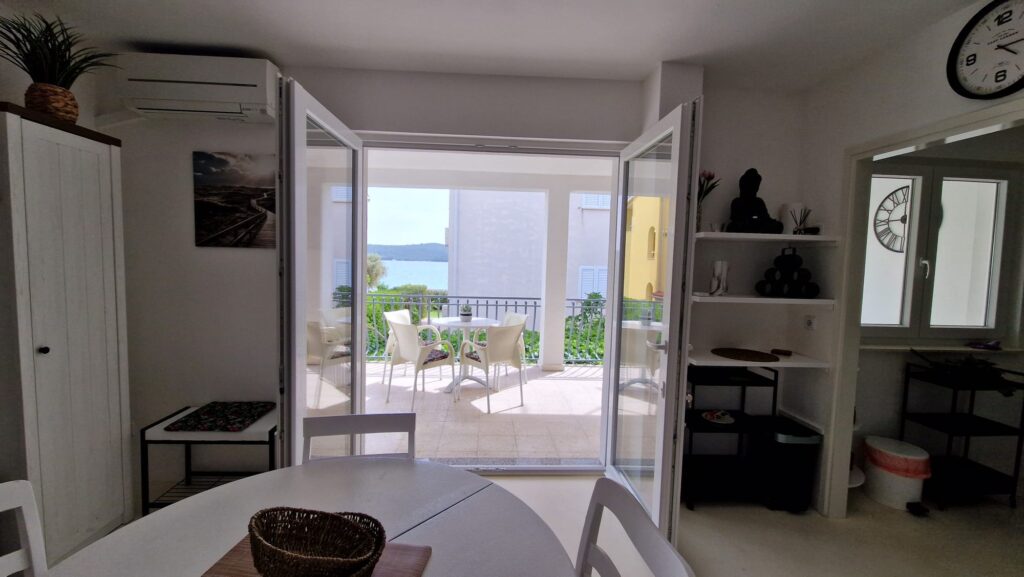 Jestli hledáte místo, kde je všechno na dosah ruky a moře máte skoro u nosu, pak je Apartmán Luca přesně pro vás. Nachází se ve druhé linii, ale reálně jste do 20 metrů na hlavní pláži, promenádě i u vody. Tady je všechno blízko — a hlavně na rovině, takže ideální i pro ty, kteří nechtějí zdolávat žádné kopce ani schody.