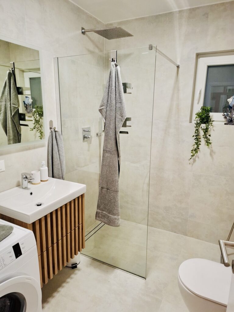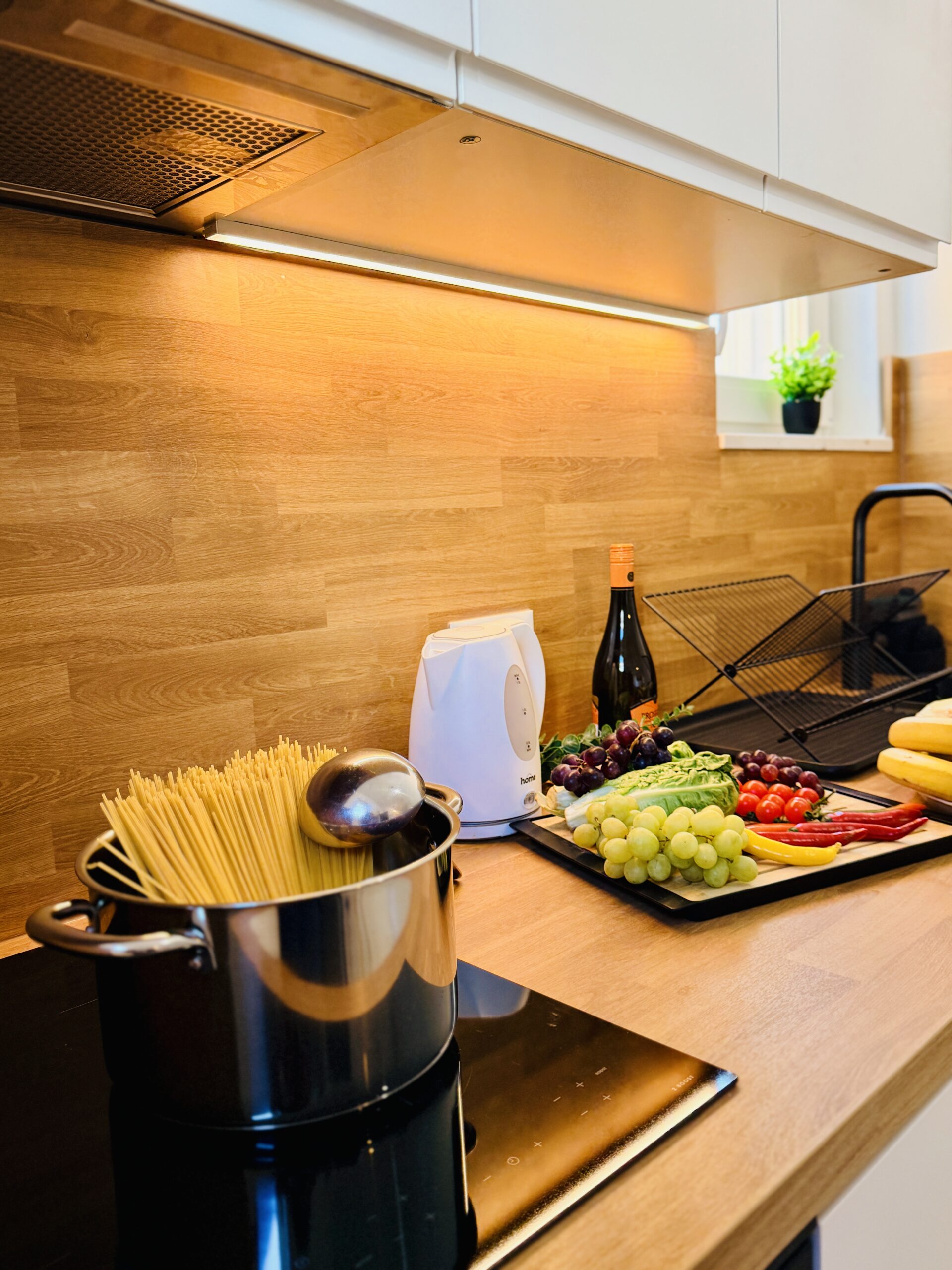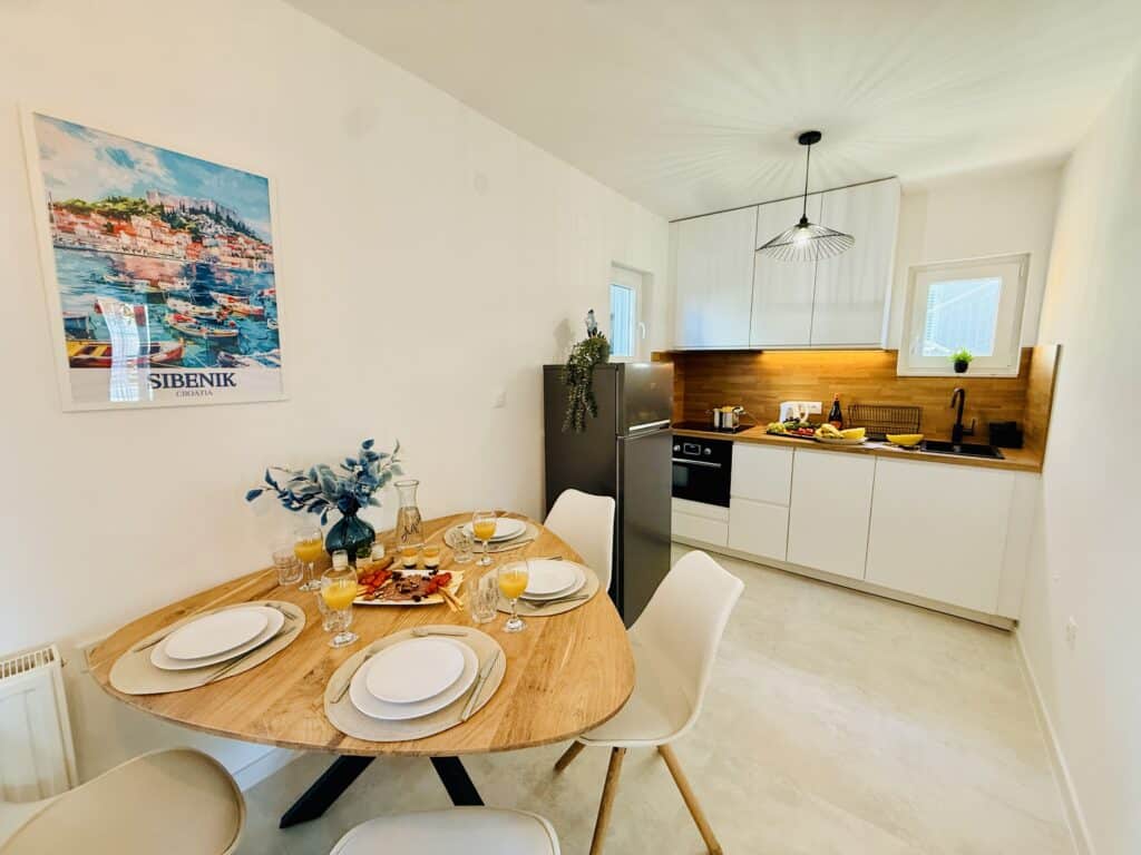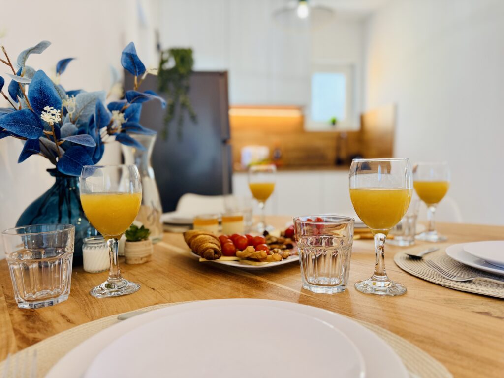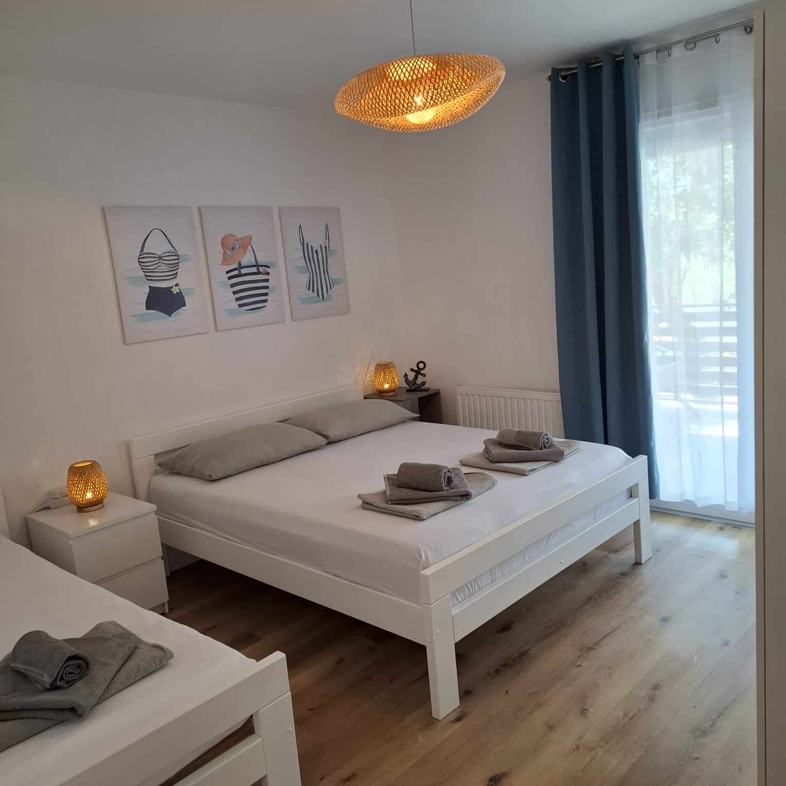 Jsou to dva samostatné apartmány v jednom domě, každý má vlastní velkou terasu, dvě ložnice, plně vybavenou kuchyň s myčkou, krásný obývák a relaxační venkovní zónu. A samozřejmě — jako vždy u nás — paddleboard zdarma.