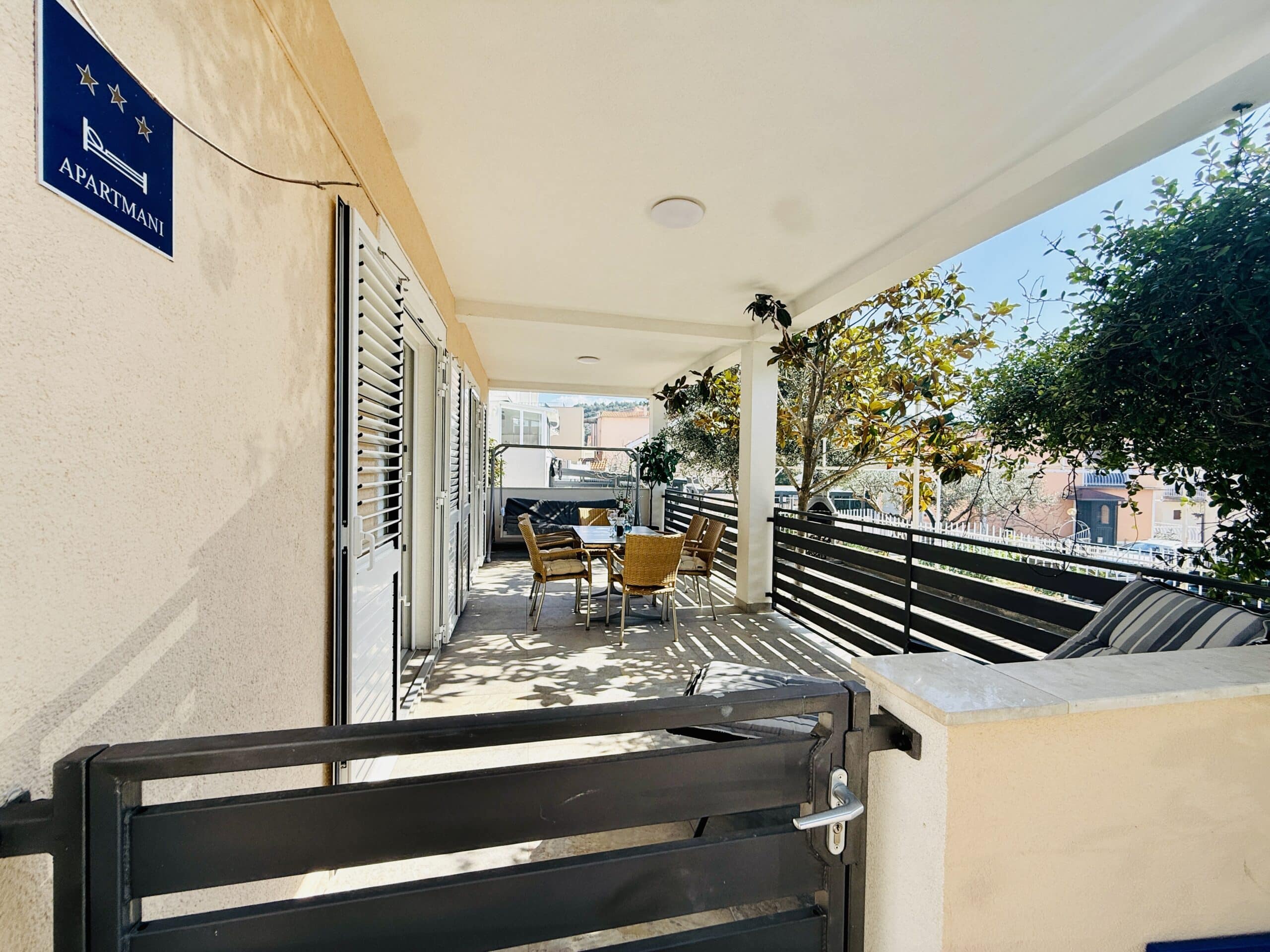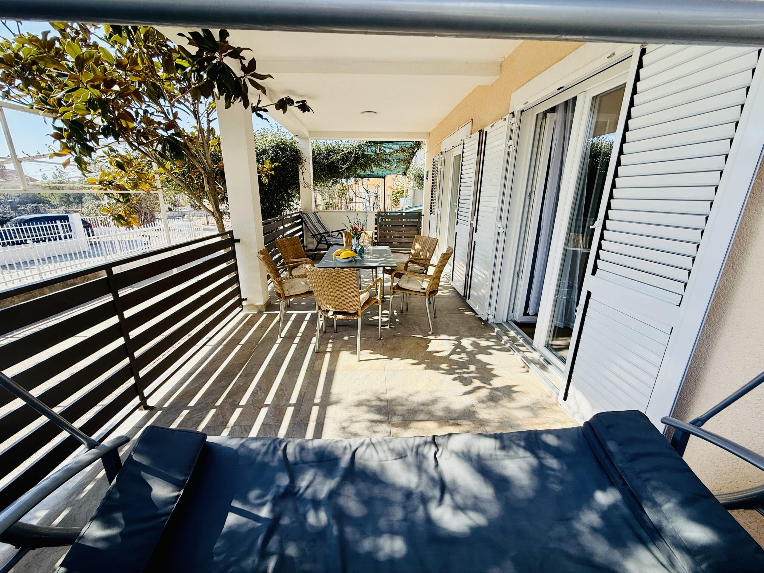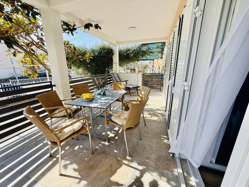 Magnolia 1 je přízemní apartmán s prostornou předzahrádkou, kde můžete trávit celé dny – snídaně, odpolední siesta v lehátku, večerní grilovačka. Terasa má uzavíratelnou branku, takže je perfektní i pro malé děti nebo pejsky. Na pláž jen sejdete 60m z mírného kopečka.