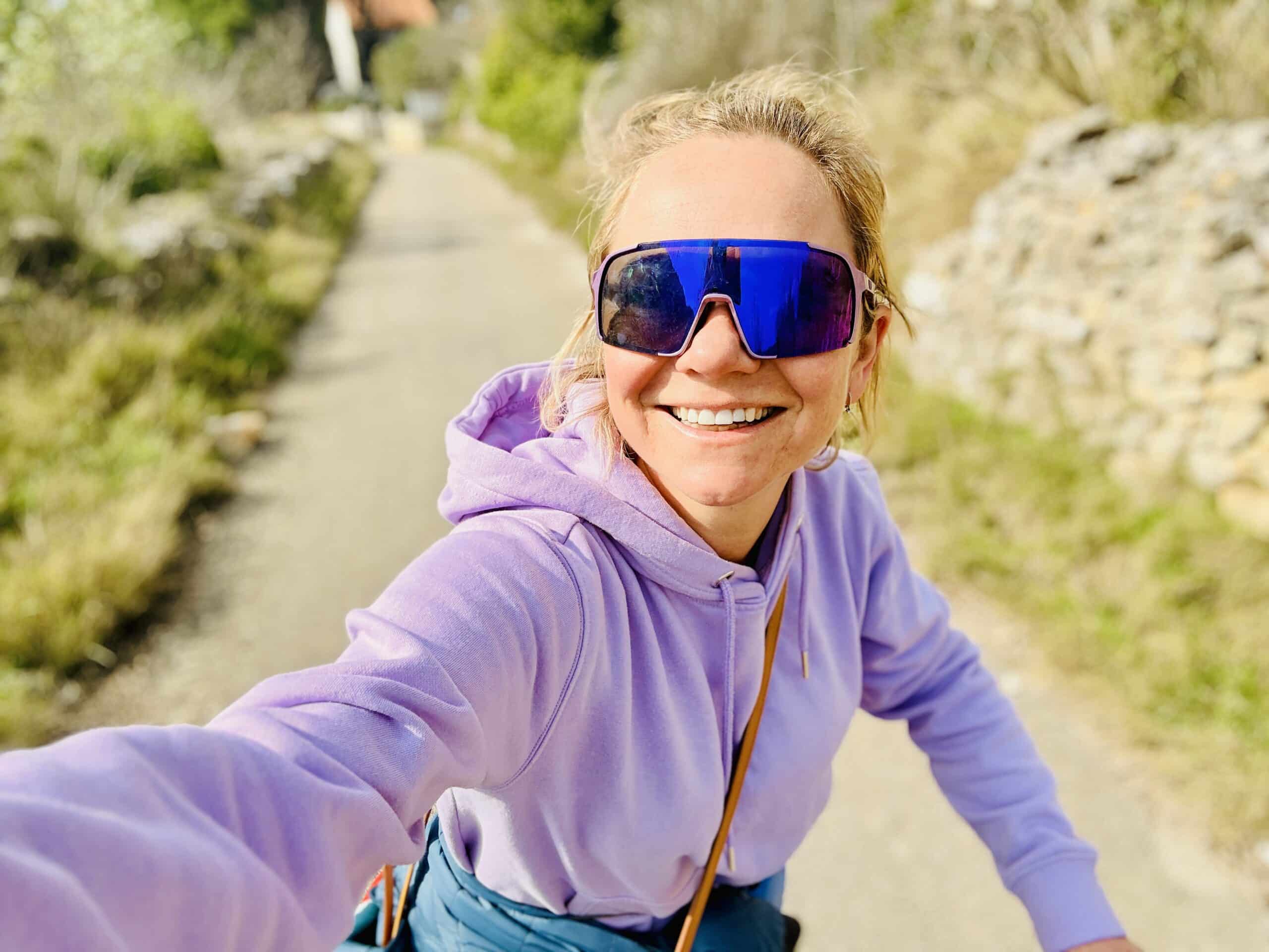 Sedíte na kole nebo koloběžce, jedete mezi olivami, zastavíte u moře, děti běží do vody, pes lítá kolem vás…
