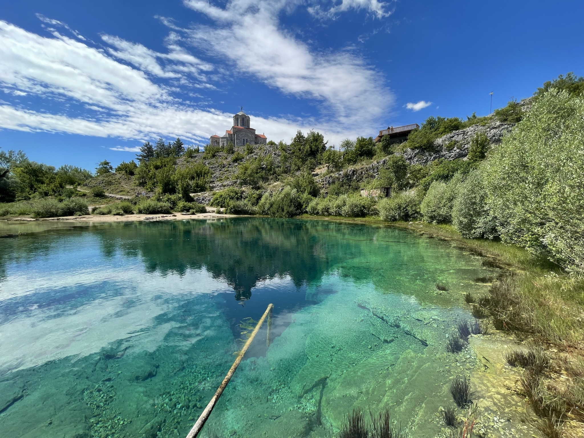 Řeč je o pramenu řeky Cetiny, který vyvěrá v Dinarském pohoří cca 70 minut jízdy autem od Žaboriče. Chorvatský Glavas nebo Veliko vrilo připomíná obrovské dračí oko svítivě tyrkysové barvy,  jehož zornice má hloubku 115 metrů! Auto zaparkujete přímo nad pramenem, odkud se po několika desítkách schodech dostanete na pláže průzračného jezírka. Koupání je zde již zakázáno. Pokud byste se ale chtěli osvěžit, můžete popojet autem o chlup dál podél řeky a smočit se v řece Cetině, přístupy do vody jsou pozvolné a uvidíte je hned vedle cesty.