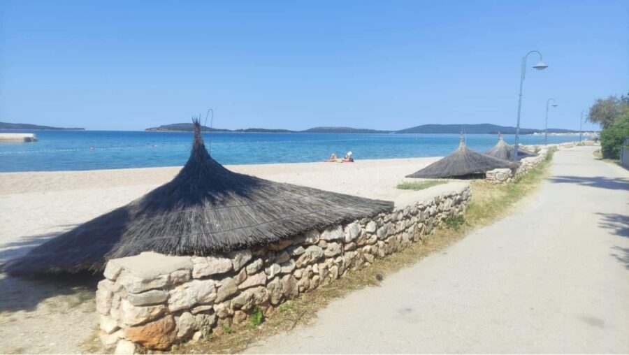 Hurááá! Hlavní pláž v Žaboriči, která je od našich apartmánů vzdálená jen asi 100 metrů, se konečně dočká stínu. Přípravy na sezónu jsou v městečku v plném proudu a součástí je i připevnění nových velkých slunečníků podél celé pláže. Celkem jich bude na pláži šest. Ale nemějte strach, když se Vám nepodaří urvat slunečník, máme v apartmánu stínící stan, který je Vám plně k dispozici po celou dobu pobytu 🙂
