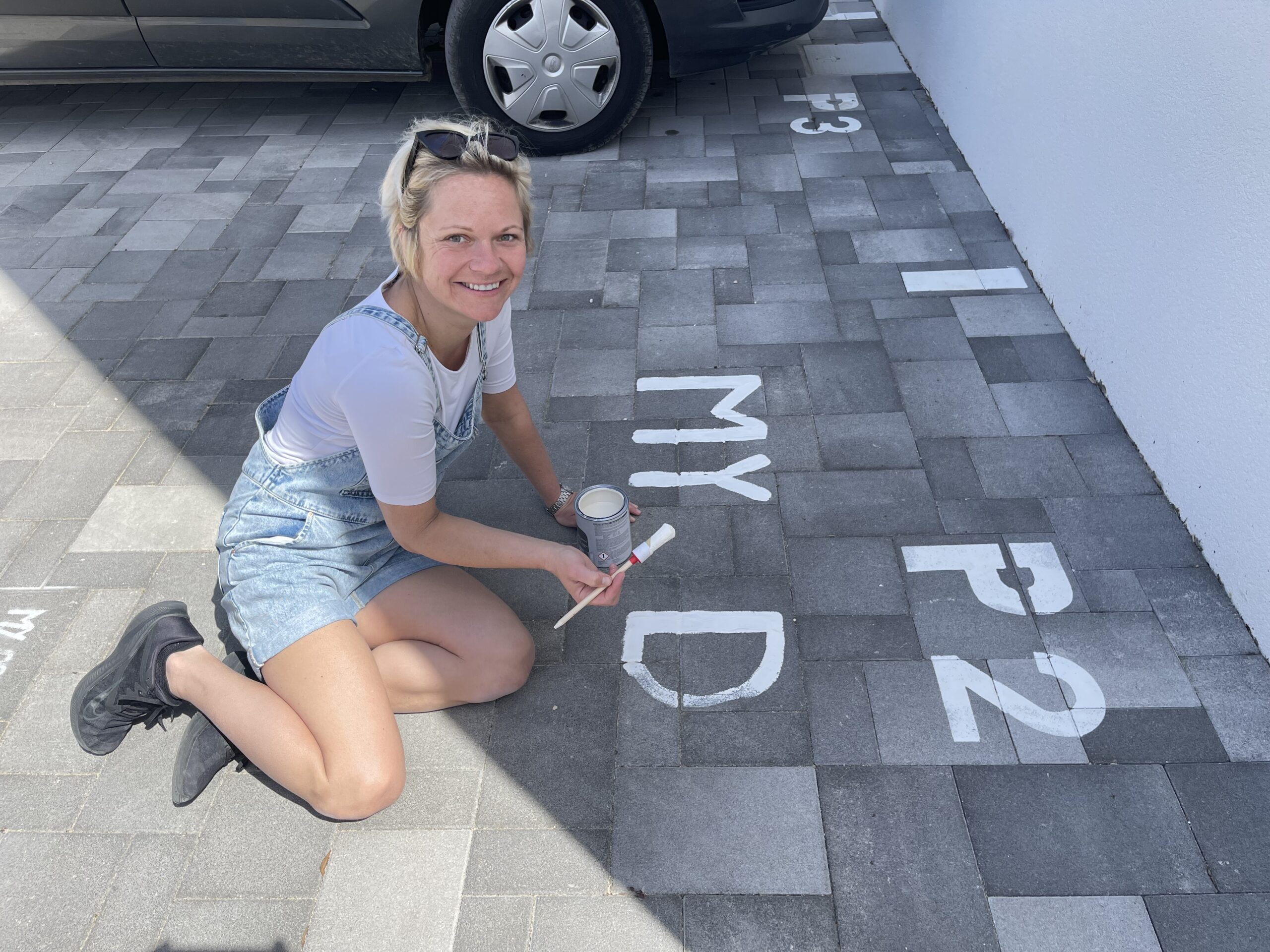 Pak jsem pro lepší orientaci po příjezdu výrazně označila parkovací místa nápisy s názvy našich apartmánů. Sama vím, že by mi to jako blondýně usnadnilo pátrání po tom, kde mám vlastně zaparkovat.