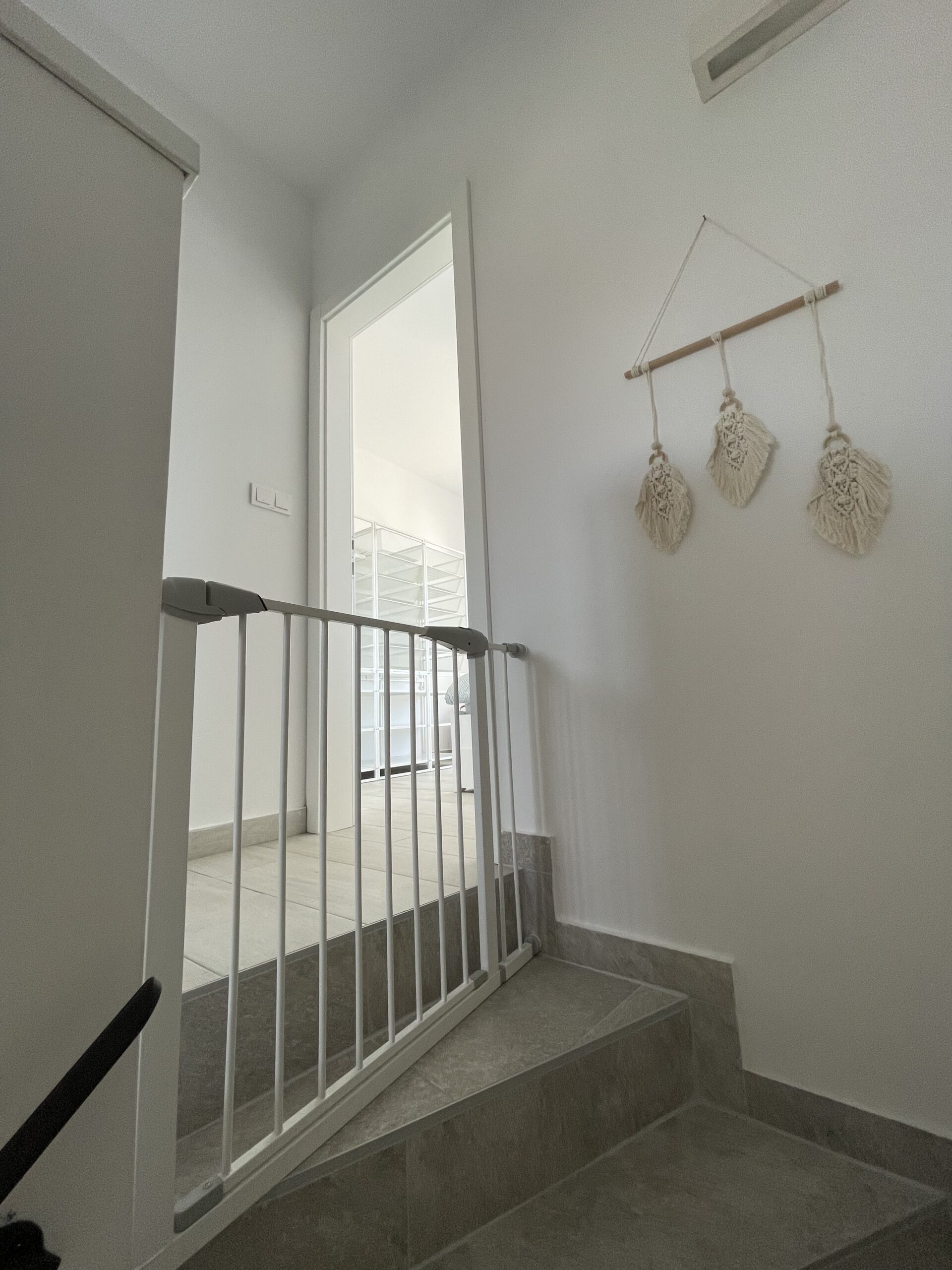 Pro naše nejmenší hosty (ale i pro klid jejich rodičů) namontoval Tom nad schody v apartmánu Happy Home zábranu. Bezpečí na prvním místě.